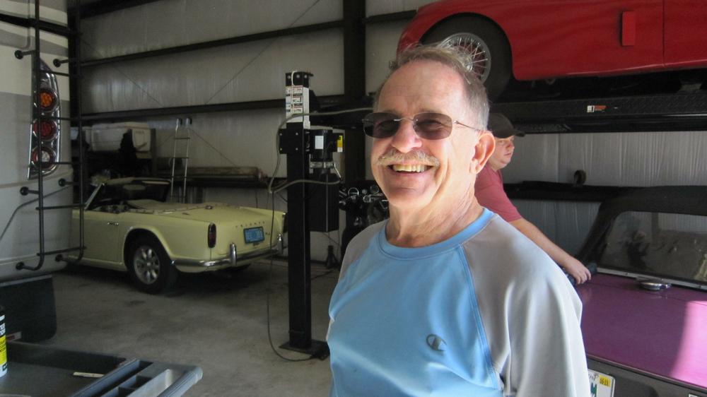 Mid morning appointment with Tom Seegmueller in Albany, GA. His wife Kelly's MG Midget has been sitting two years since we last worked on it. Last time we got it running, repacked seals in the brake balance safety switch, bled the brakes, and discovered the rear brake hose as badly clogged with no rear brakes. The hose has since been replaced, not much else. Today we bled and adjusted the rear brakes, but brake drums seemed to be stuck to the shoes, so need to get it running again.
