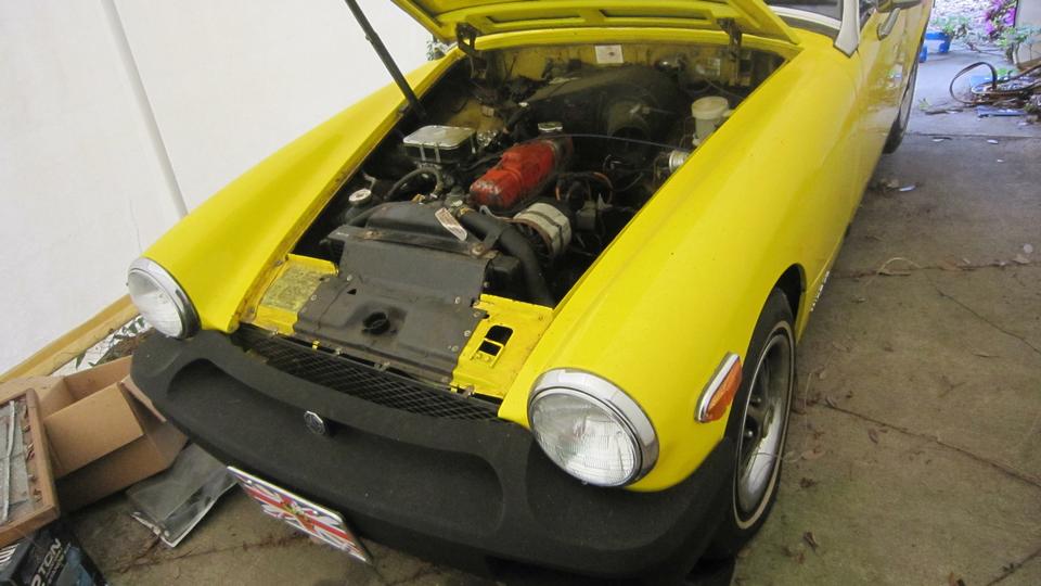 We did take some time to look over the car to "appraise" the work required to R&R the engine and gearbox. The propshaft connection is accessible through top of the tunnel. Gearbox rear mount fasteners are accessible through holes in sides of the tunnel. The small engine mounts are easily reached from top. The radiator mount is substantially forward from the engine, so it looks like the engine can pull forward, tilt and lift upward without moving the radiator (that was a surprise).