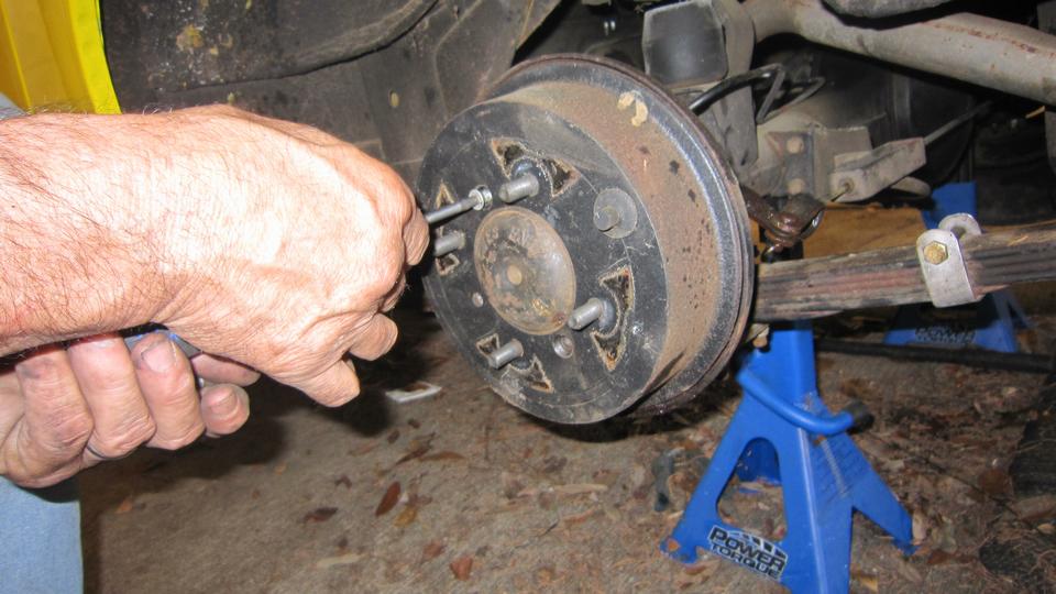 Rear axle still on jack stands, backed off the rear brake adjusters, gave it a good tug in reverse to get the rear wheels to turn. Reset the brake adjusters with shoes close to the drums, give it a forward run in 1st and 2nd gears, hit the brakes, right wheel stopped but left one didn't. Hand brake killed the engine. So the parking brake works on both wheels, but hydraulic brake works on right only (at least partly), no hydraulic brake on left.