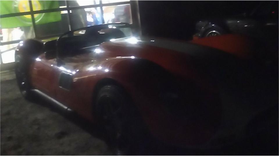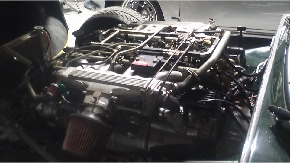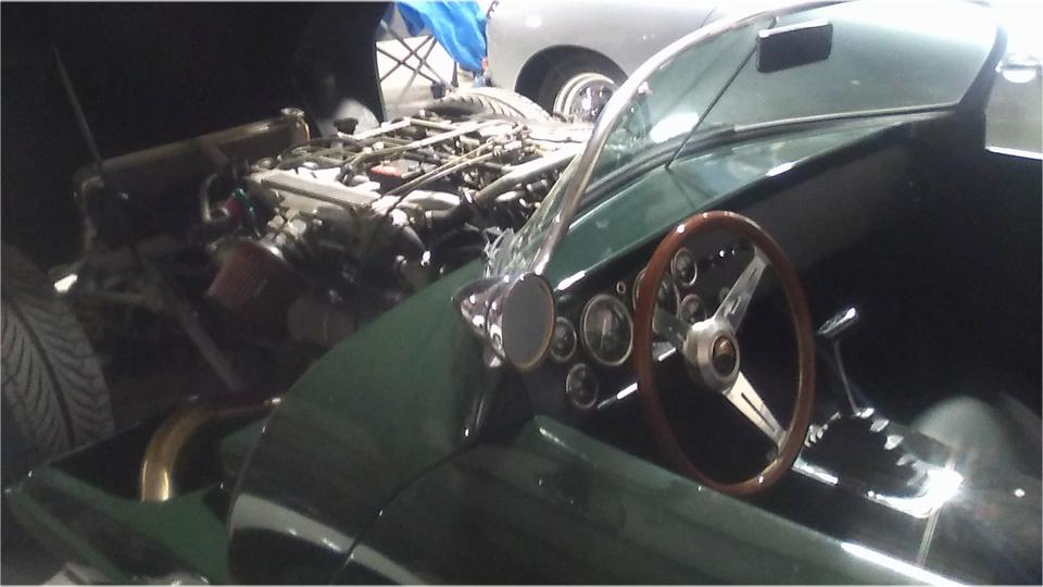 Near as I could count, more than 80 people inside for the party, a few more outside around a bonfire, and more coming and going through the night, likely over 100 attendees. We could put serial numbers on these Beck cars, but I don't know which one came first. This green beast has a Jaguar V12 engine, fuel injected, with automatic transmission.