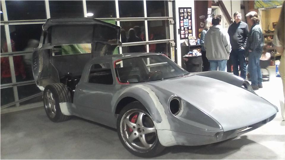 The white one has a modern Corvette engine and manual transmission. The grey one being the newest addition has a Porsche flat six, mid engine.