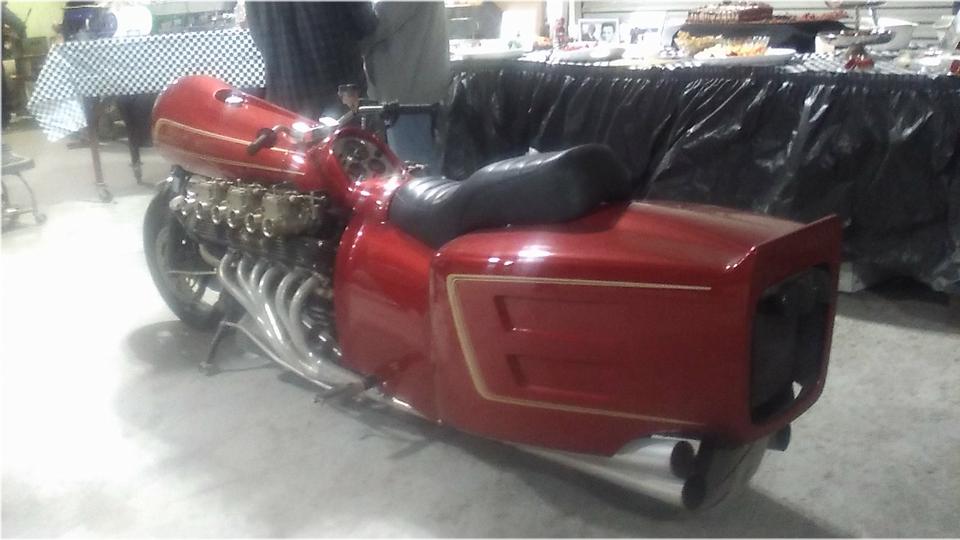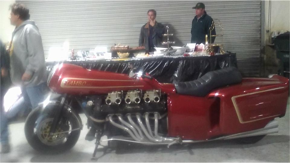 There was a unique motorcycle, hand built one of a kind, older issue, with a Lamborghini V12 engine.