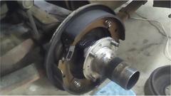 Shane was under the impression that his MGA may have bolt-on wire wheel adapters, so we removed a rear wheel to check. Good news is, all original factory style splined hub parts. It has chrome wire wheels, so those are replacement parts, no clue to age or mileage, but not excessive wear in the splines. While it was up we were checking a sticking parking brake cable which may need to be replaced (shopping list). Brakes stopped on one side but not on the other side, and both sides ran out of adjustment range. That turned out to be undersize brake shoes (that Moss Motors was selling a few years back). The Magic Trailer stepped up again with a single axle set of new brake shoes, soon installed on the rear axle, so the parking brake was working again. Pedal is a bit soft, so it needs bleeding, but the brakes do work with enough pedal travel.