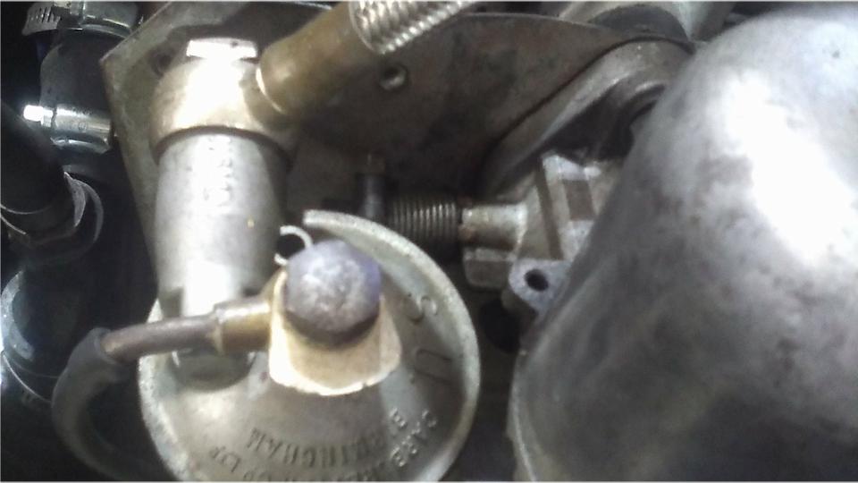 We never did figure out why it lost the coolant, as it seemed to be holding pressure after the refill. Suspect eradic operation of the thermostat. But then it was dribbling fuel from the front carburetor float chamber overflow. The solid steel valve pin had sevear wear in the tip, looking like stair step in the cone end. I have never seen such deep wear in a float valve pin, and ditto for the second carburetor. The Magic Trailer supplied the needed replacement parts, so minutes later we had two new float valves installed, and the engine was running well. Rather cold working in the garage, so we took a break and never got back to it before dark.