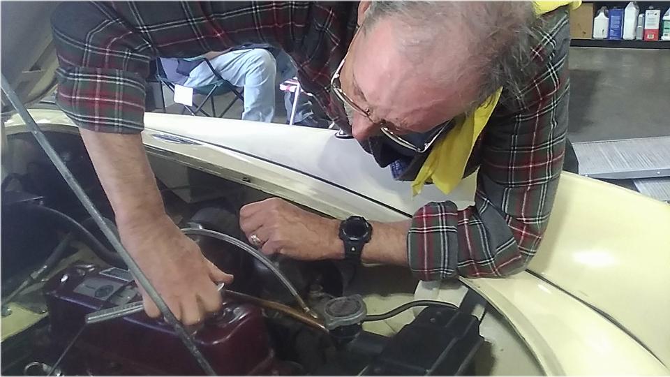 Then we had a look at an MGB, not run for at least five years, fuel drained, two gllons of fresh fuel added. It was too stubborn to start, not even a little click when the key was turned to "Start". That was quickly traced to a duff ignition relay, easy to replace later.