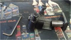 Done this before. Just remove the two oil cooler hoses, and use the one that doesn't leak to join the port at rear corner of engine directly to the oil filter. Quart and a half of oil from the boot, and walk next door to a gas station for another three quarts to top it up. And might as well change the oil filter while we have the bonnet up, and call it an oil change, 2 miles early at 3998 miles since the last one. Nice coincidence. It fired up with 60-psi oil pressure at idle speed,so no harm done to the bearings.