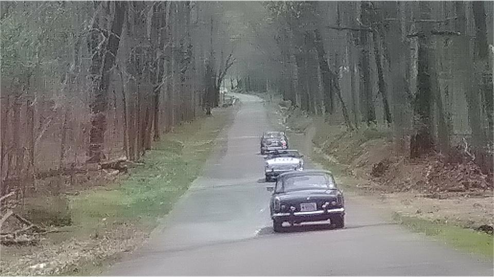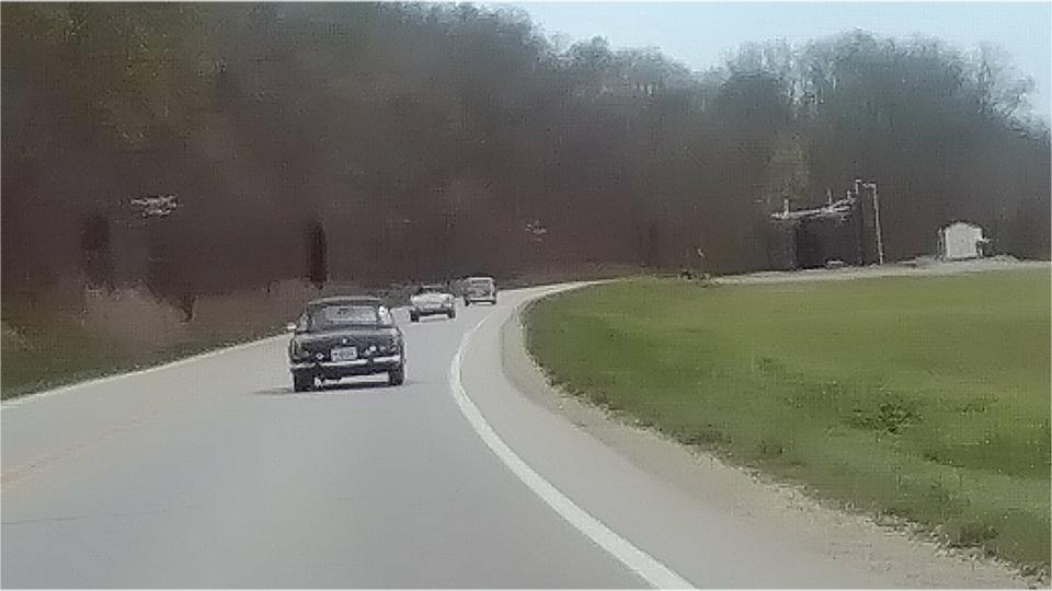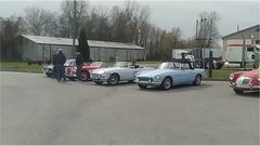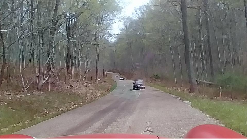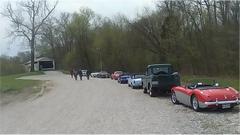 Getting off the state highway we found a few nice side roads through the forest. The blue MGB was lying in wait, then merged in on the fly as we were going through Troy, IN, now making eight.