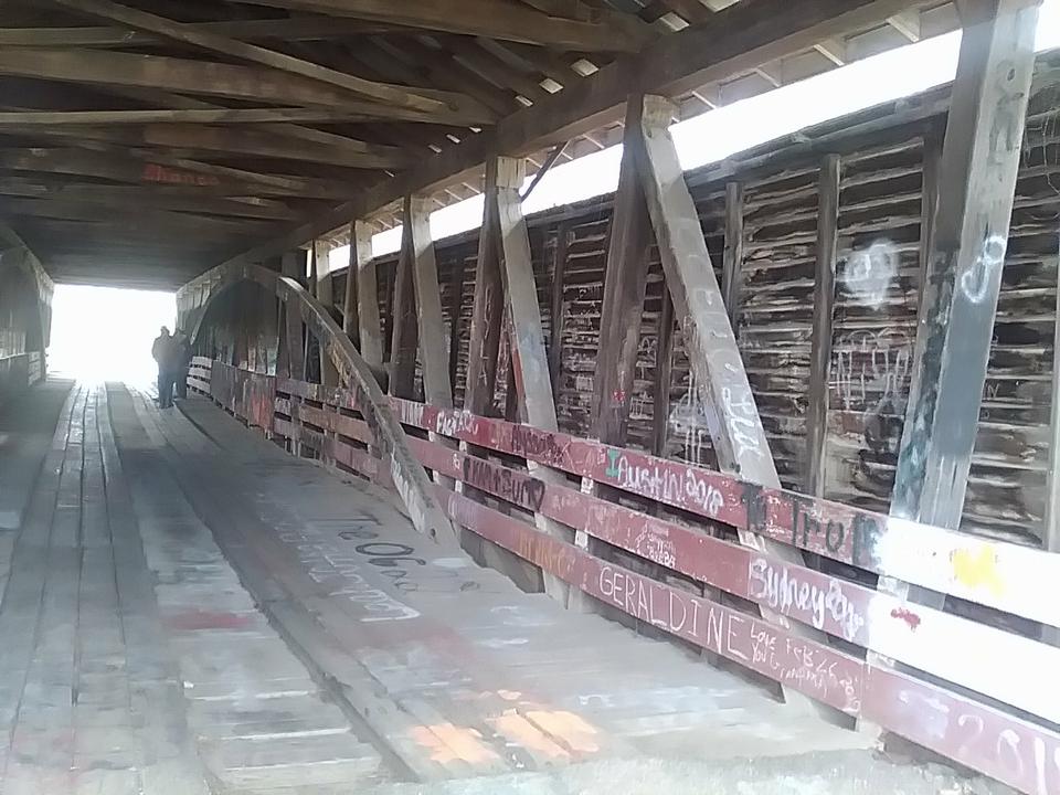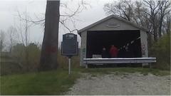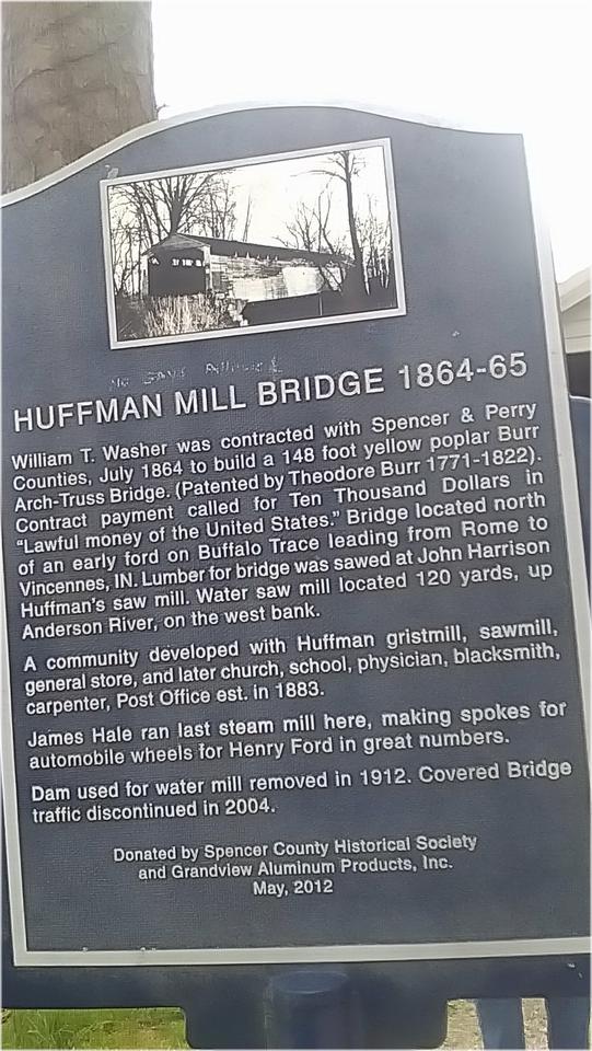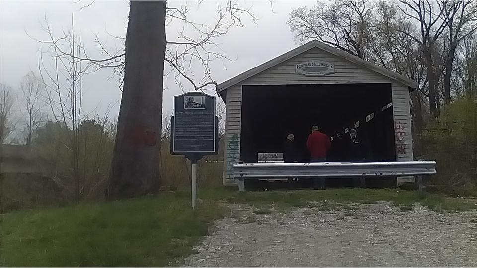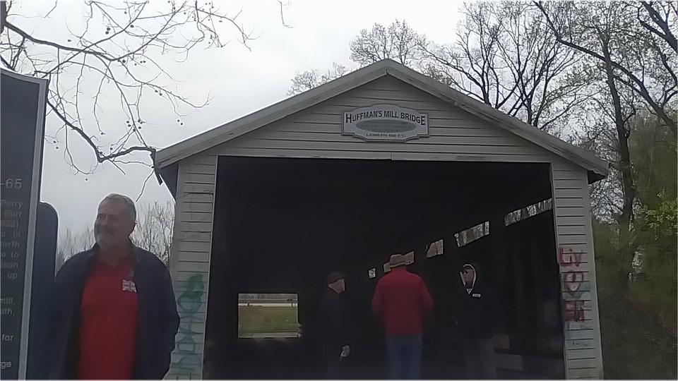 A bit farther on we found the Huffman Mill Covered Bridge for a leg stretcher stop. Apparently in service for 140 years from 1864 to 2004. Looks to me like it would still be road worthy today, except for the barricades, and the newer 2-lane bridge right beside it.