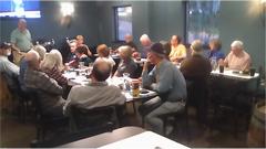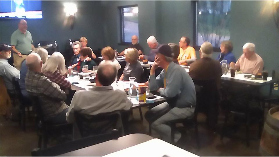 Monthly club meeting for SIR-Brits tonight at Prime Time Pub & Grill North in Evansville, Indiana. About 20 people present, to go with a few British cars in the car park. Some chat about current events, like last Saturday's cruise to the winery, followed with considerable chat about a possible upcoming Project car. Looks like they are after a TR6 this time, because it may be worth more than an MGB when finished. I didn't have the heart to suggest an MGA, which might even out the odds considerably.