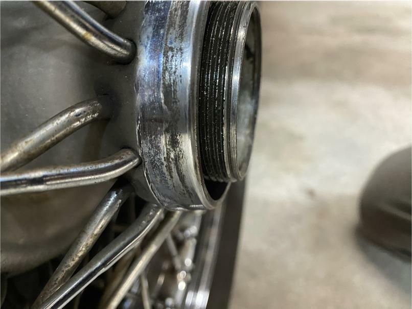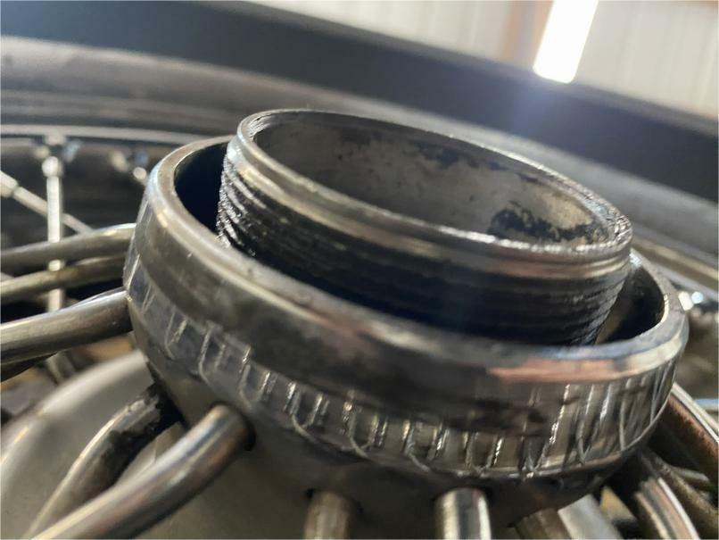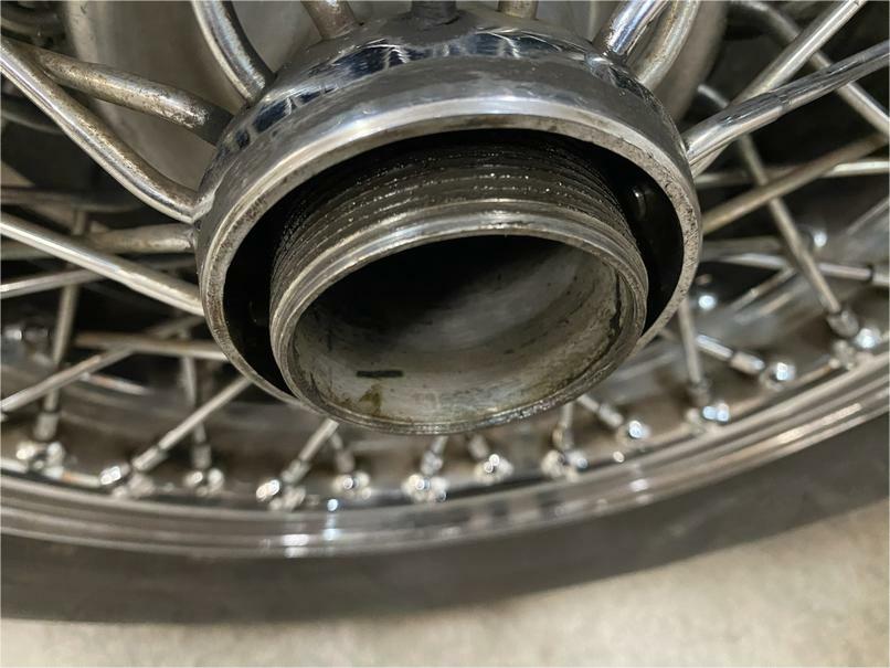 Sitting in Decatur AL today. Got word from the two guys who were moving two MGA from Huntsville, AL to Kentucky. While towing the second car on a tow dolly (on Monday), the right rear wheel cam off while sailing along the interstate highway near Nashville, Tennessee. They never did find the wheel, think it went over the guard rail into the Cumberland River. Put the spare tire on the the car, but had no KO nut to secure it. The nut from right front would not screw onto the right rear hub, so they had the car towed the rest of the way home ($$$$). --- They sent pictures of the offending wheel hub (with the spare wheel installed). Staring at those threads for a while, it looks to me like a right hand thread, which belongs on the left side of the car. Bummer. The DPO strikes again.