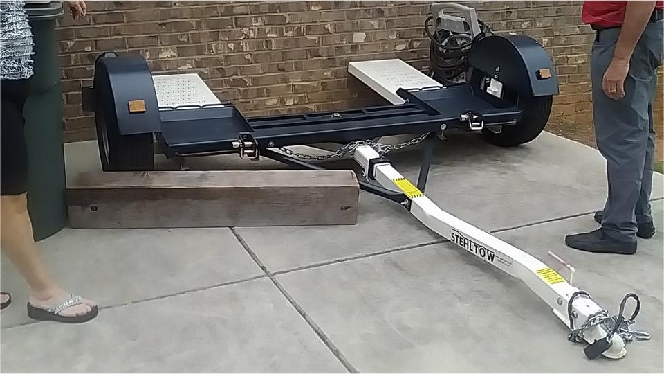 Then we got a peek around the corner of the garage to check out Dave's new tow dolly. The concern here was that