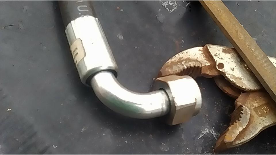 The truck shop here does not have tools to replace the oil hose (using the original end fittings). They did give us contact information for a shop in Huntsville that might be able to do it, but it is now Saturday afternoon, so no-go there until at least Monday morning. Well, nothing new here, and we don't have any urgent appointments for the next few days. So unless someone comes up with a better suggestion, we will order new hoses Monday to be delivered Wednesday, and patiently sit it out. Stay tuned.
