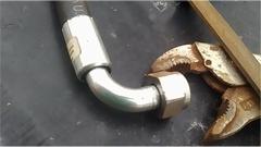 Happy to be rid of the stainless steel braid covered hoses, which seem to be problemmatic. I'm coming to understand why braid covered hoses are illegal in Australia (and some other places). The braid certainly does nothing for abrasion resistance. If it rubs on a bolt head or metal bracket it quickly abraids right through the braid cover. Broken braid wires will be a health hazzard, prone to poking holes in your fingers. Broken braid wires can also poke holes through the rubber hose cover to cause some leak it was intended to avoid.