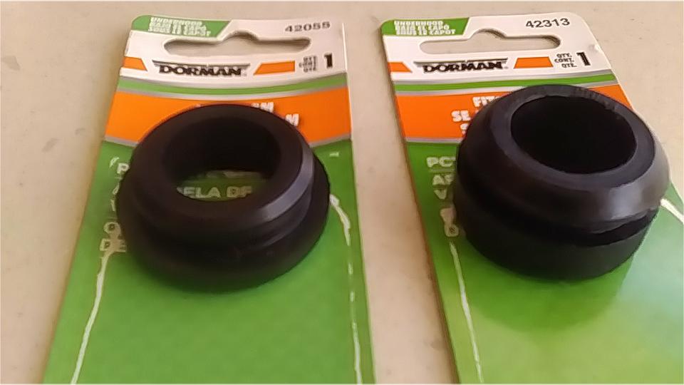 Needing new grommets for the oil cooler hoses, picked up these Dorman parts from nearest O'Reilly Auto Parts store. Packaged as singles in bubble packs, around $6 each these days (get used to inflation this year).