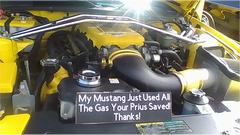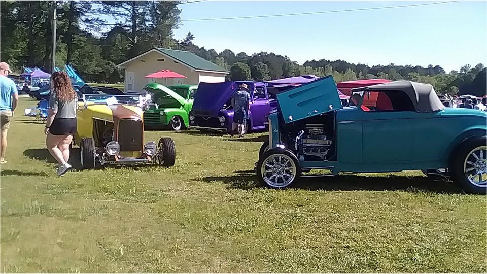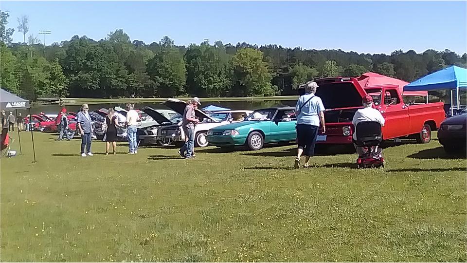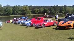 Street rods, muscle cars, and pick up trucks galore. Aside from the little British cars, most of the rest had V8 engines. Give them a break, this is NASCAR country, so the British cars were the odd balls here. A few walk-bys stopped to chat about LBCs, but pretty much only people who actually had them. None of the V8 types even bothered to ask. "What is it"? But at least no one spit on us. The yellow Mustang likely had the most apropos sign of the day.
