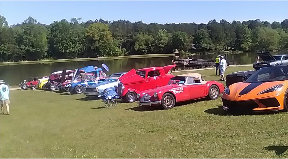 By mid morning we were checking in to Dixie Vintage Antique & Classic Car Show at Veterans Park in Hoover, Alabama. Not specifically British cars, something around 200 cars on display, mostly American stuff. At least I was happy to see that it was mostly vintage cars, 25 years and older. Cars were parked in serial order as they arrived, so you only parked near someone else if you arrived together, and I had to walk the whole show field looking for a few British cars. I did find another MGA, an Austin Healey, and an MGB.