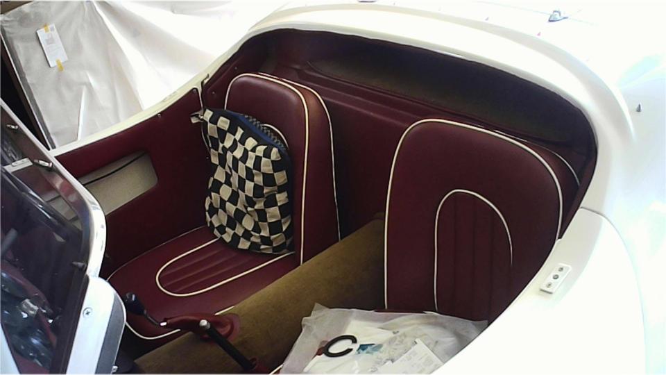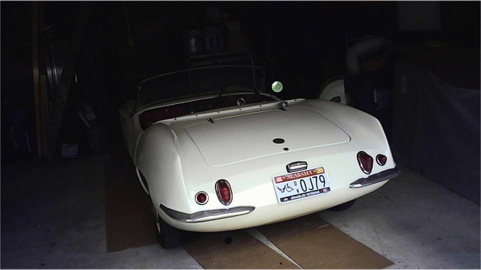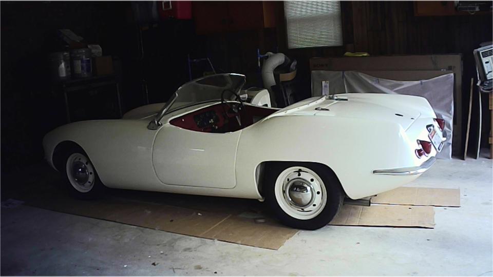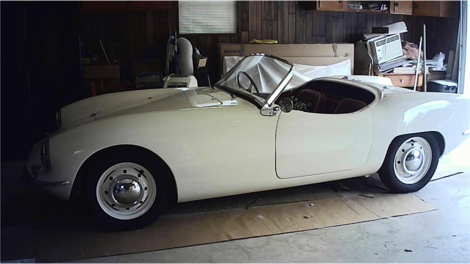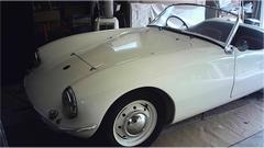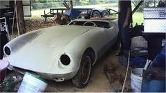 Then there is his "other" Elva Courier, a 1960 Mk-II with 1600 engine and front disc brakes. Some parts missing, some assembly required, some fiberglass work needed, and some rust in the under chassis. That is, restoration will be a rather difficult project. With so many missing parts, this one will never be "factory original", so it is destined to be a bit of a restomod. It is likely to end up with a supercharged 1800 engine and 5-speed gearbox, may have a narrowed heavier rear axle, wider wheels and tires, a bit of under body modification to accommodate the wider spats, and/or even more radical mods.