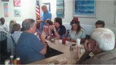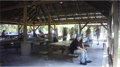 After the picnic we were off to find a WiFi spot. In the process of downloading pictures from the new digital camera, a battery contact terminal was bent and broken, so the camera is disabled, never to work again,and was soon relegated to the dust bin. I figured this thing was poison when the hard waterproof case had to be opened to plug in the data cable to download the pictures, and the batteries would fall out. Total working life of the camera was 6 days, 3 events, 38 pictures taken, so those were some of the most expensive pictures ever.