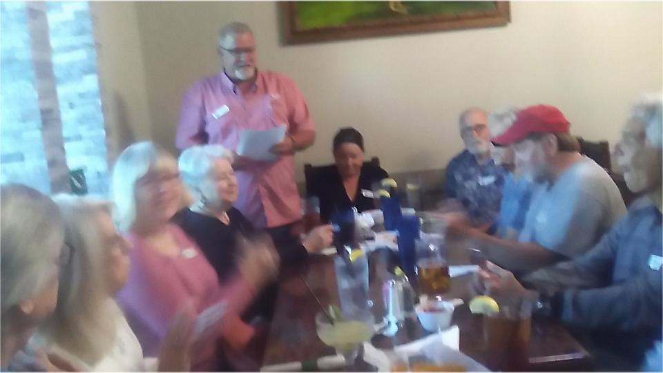 I suppose most of the 20 people in attendance still remember us, and several are smiling and thanking me for web site. Picked up another club sticker for the left wing.