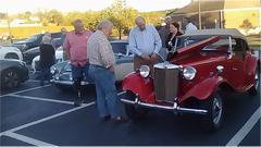 In the evening we were off to a dinner meeting with Panhandle British Car Association at The Hangar American Grill in Milton, FL. This is a new meeting place as of a couple months ago, and looks to be permanent for monthly meetings. Two dozen people present, and I was asked to present a little trip update near and of the business meeting. Good fun, but I didn't get the pictures. Did get a few pictures outside with a little tire kicking going on, but the dumb phone camera does not do well in low light.
