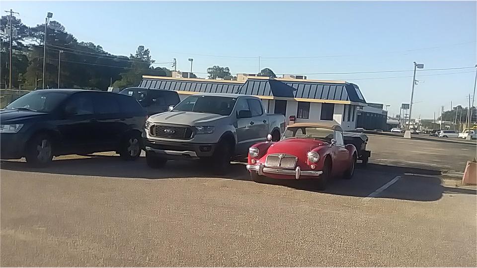 There was a club we haven't been able to connect with for 9 years, so we bit the bullet and did a solid 6 hour drive today from the Gulf coast up to Florence, Alabama to attend a club meeting with Shoals British Car Club. Their web site home page clearly stated club meetings on the 2nd Tuesday each month at the Golden Corral in Florence, dinner at 6, meeting at 7. We arrived a bit early, and being hungry we sat down and had dinner, but no one else showed up (not terribly unusual).