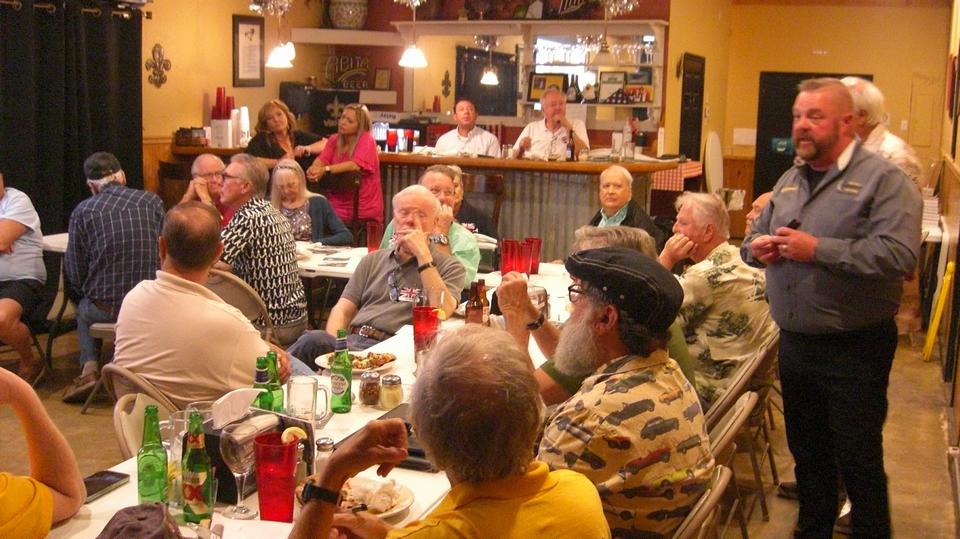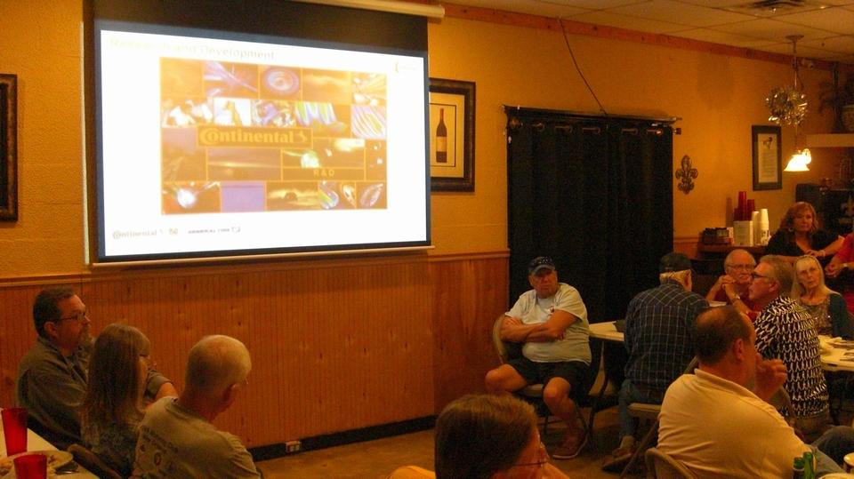 Cruised two hours west to Mandeville, Louisiana on the north side of Lake Ponchatoula, for an evening meeting with British Motoring Club New Orleans, North Shore group. About 30 people present as they had a guest speaker from Continental-General Tire Company. He had a new promotional video (possibly the first time it was seen in public) detailing the construction details and manufacturing of tires. Very good presentation, long video, followed by good questions and good answers. And a chance to try out a new (used and gifted) compact digital camera that looks like it will work out okay (pictures immediately below).