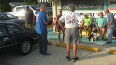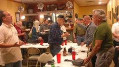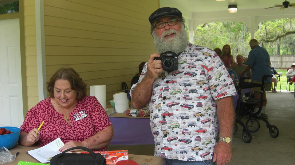 Fun taking pictures of people taking pictures of me taking pictures. Head count finally came to 80 people present, including club members, family, friends and visitors. I started with a dish of pastries, cookies, various deserts. Then I guess I got bold and ate a little corn on the cob and a couple pieces of sausage and veggies that had been boiled along with the crawfish. Pretty sure that was later going to turn out to be a bad idea. A few more LBC's had arrived after us, more parking in the grass of course.