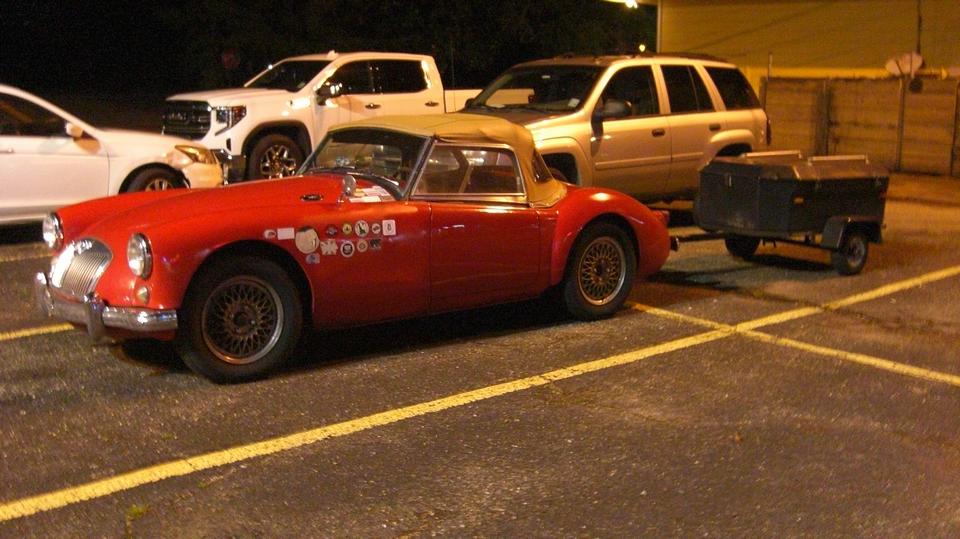 Had another appointment (request), so after the picnic we were off to visit Rick Gilley in Ponchatoula, LA. Rick has three LBC in his back garage, an AH Bugeye Sprite, an MGA Coupe, and an MG TD. I guess he likes red. We were summoned because the MGA was running badly, or barely running, pretty much not drivable. We would get back to that later. After the introductions there was time for some snacks and drinks and chat under AC. Getting dark before it got cool, no car tinkering today, but I did get a handle on what I thought was missing pictures.