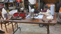 They have problems beyond sloppy shafts, like where choke return springs are hooked into the bottom of the throttle bodies, the holes wore out the bottom so the springs can no longer connect here. Choke arms have holes worn badly oval or right through the side wall. So two months ago I picked up a pair of carbs at a swap meet, some parts missing, but with the bodies and shafts in serviceable condition. So today we will borrow a table and chairs in the cool garage of Cliff Hughes in Mandeville, Louisiana and get to work building a fresh pair of carbs mostly from a collection of used parts.