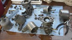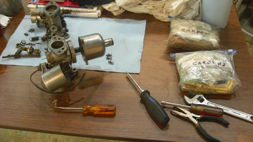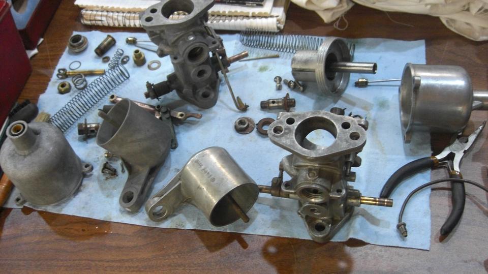 With the engine running well again, we were soon into the cool garage to attack the old carburetors. Two