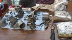 New gaskets for carburetor base mounts and for the air filters. Not long to bolt it all up, adjust the cables and arms, fire it up and tweak the tune-up bits to make it run well. Huge improvement over the old worn out carbs.