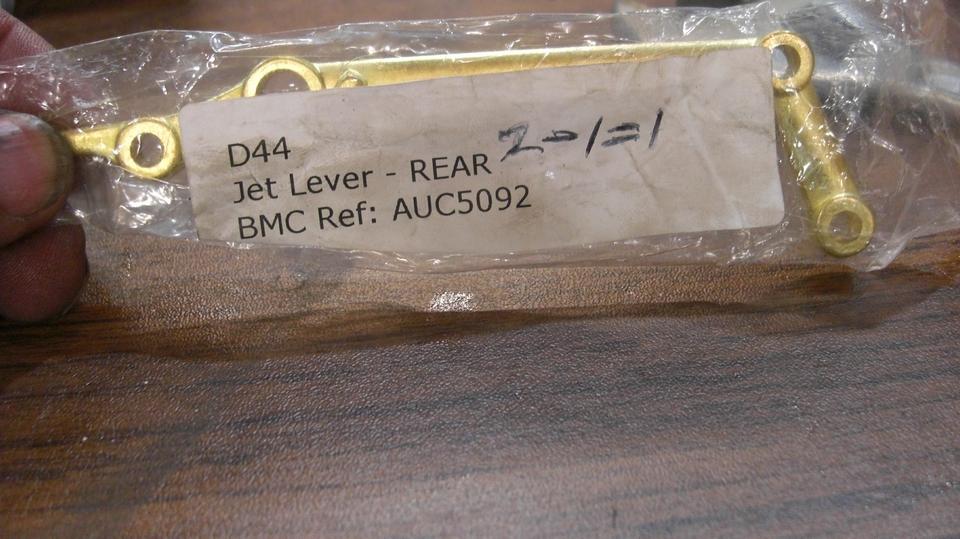 A brand new part for the rear jet lever (choke arm), and the best of the good used parts for the front jet lever. Some new clevis pins, and new springs for jet lever return.