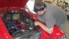 Say hello to Alex Anastasiadis who lives in Bondville, IL and has a carpet cleaning service with a shop space in Champaign, IL. One more phone call to the parts supplier, left another message, decided not to wait any later in the day. The ordering solution was to give the cash to our friend Alex, and he would punch the eBay button to order the pistons. Ten minutes later we got a phone call from the parts house. Yes they have, or had the pistons I need, but 12 minutes ago someone else punched the eBay ad to buy the parts, and now they don't have any more. Yes, that was my friend Alex on the eBay purchase, so all is well and the parts will be shipped today USPS Priority Mail, hopefully to arrive Thursday. In spite of our troubles, this may be a lucky day, as those might be (are) the only known standard size 1600 pistons in the country.