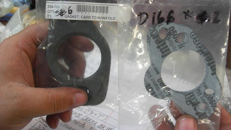 After rebuilding carburetors, the engine is still misfiring at least one cylinder with cold start, needing several seconds to clear out before it runs well. Pull the spark plugs for inspection, and they were all dry and good color. So do a quick compression test as diagnostics. The seven year old compression tester (with a lot of use on it) decided to start leaking at the quick disconnect joint on the pressure gauge. Thinking there was a thick O-ring in there, I managed to pry it out with a thin screwdriver. It turned out to be a thick rubber flat washer that looks like a packing washer from a water faucet, and it was compressed thinner with raised ridges around the edges where it fits into a retaining groove down the bore. Smashed more on the top side, so I turned it over, and with some effort managed to reinstall it (hope got it properly seated). The tester still leaked some, but then worked well enough to get relative readings between cylinders, and compression didn't look too bad. Note to self, see if I can buy a new packing washer to save the cost of a new compression tester. We installed a new set of spark plugs and drove on.