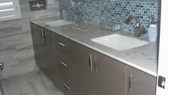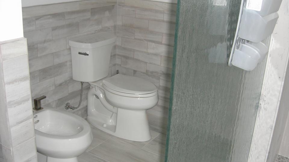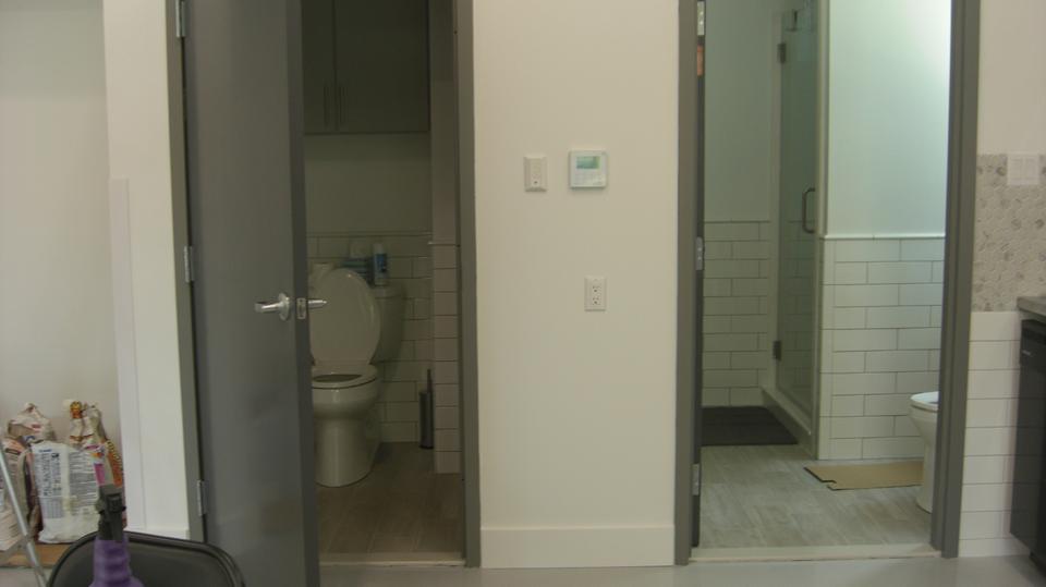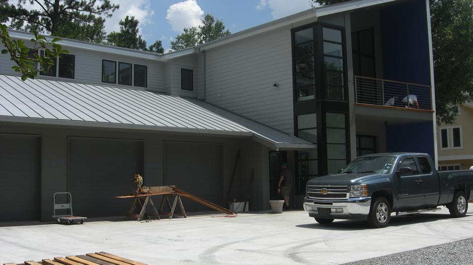 In the first picture is a yellow building at far right. That is his house, facing a service road along a main road, and that property is zoned Commercial. He has a business office on the ground floor, along with a two car garage, and he lives upstairs. The next property lot was originally also zoned Commercial, and is large enough to accommodate this nice large garage. Sometime after permits were let, and construction was started, the zoning for this lot (and most of the rest of the neighborhood) was mysteriously changed to Residential. This then requires the building to have residential accommodations, including at least one bedroom, bathroom, kitchen, etc. You will soon see this requirement is well met.