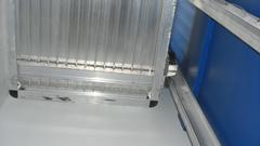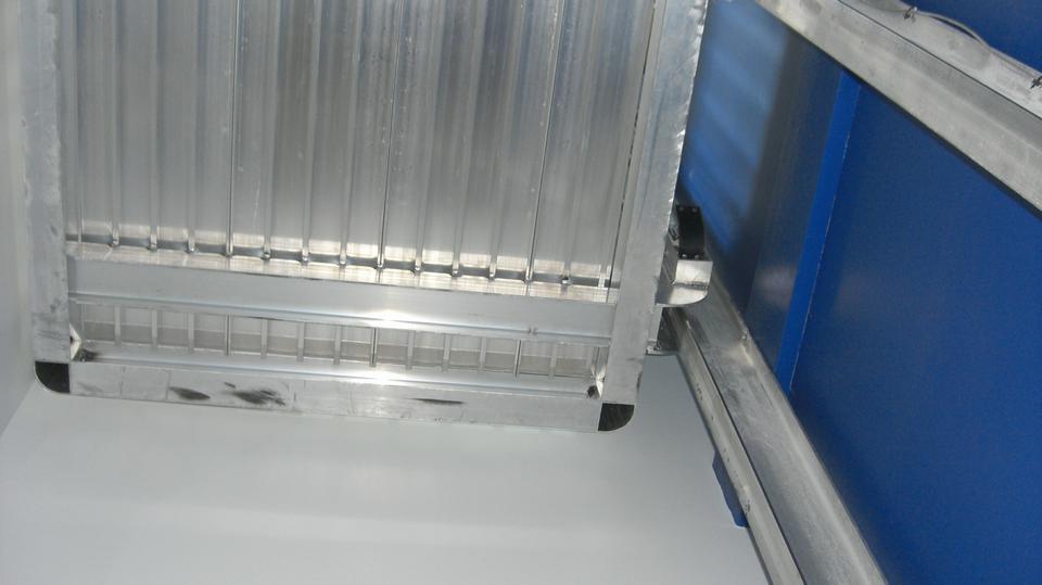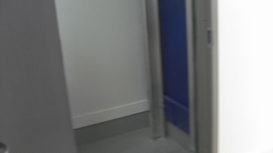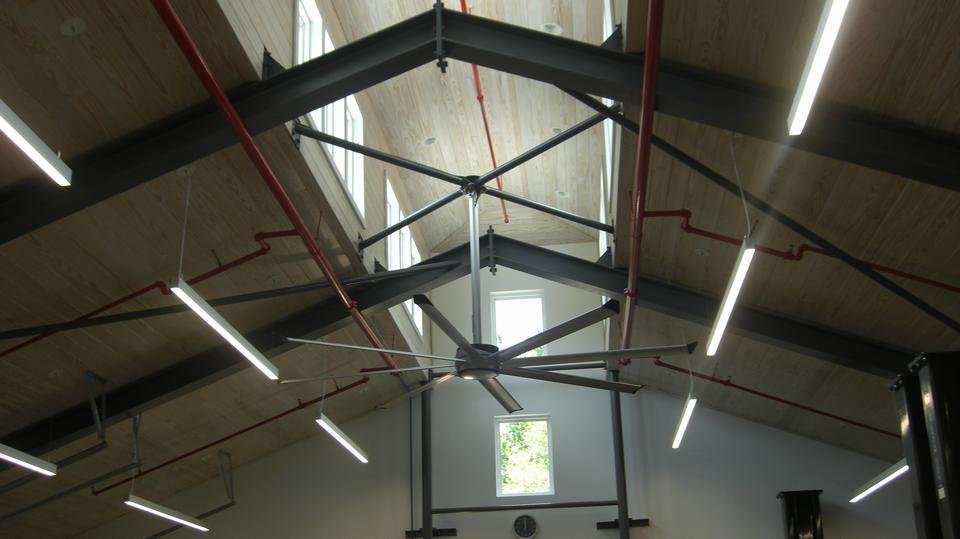 On the left end of the new building, three vehicle doors. Inside the bays are a very generous two cars deep (more pictures of that later). The high windows are for skylights and ventilation, not an upper floor, maybe open the windows to let hot air out (except the whole place is air conditioned). Center of picture is the front walk-in door, and inside a stairwell going up. Right side of the picture, a large garage door, high ceiling, and a service lift in there as well.