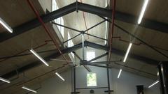 There's a picture of the atrium for skylight, really nice effect. Step back into the hallway, and hey, there's an elevator, big enough for a few people, or a car engine? Gotta see what's upstairs, storage space, maybe?