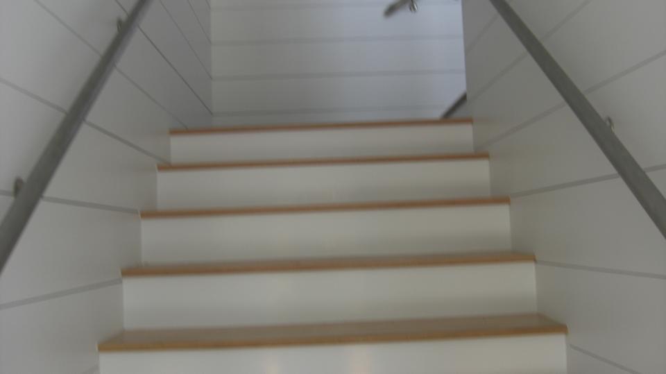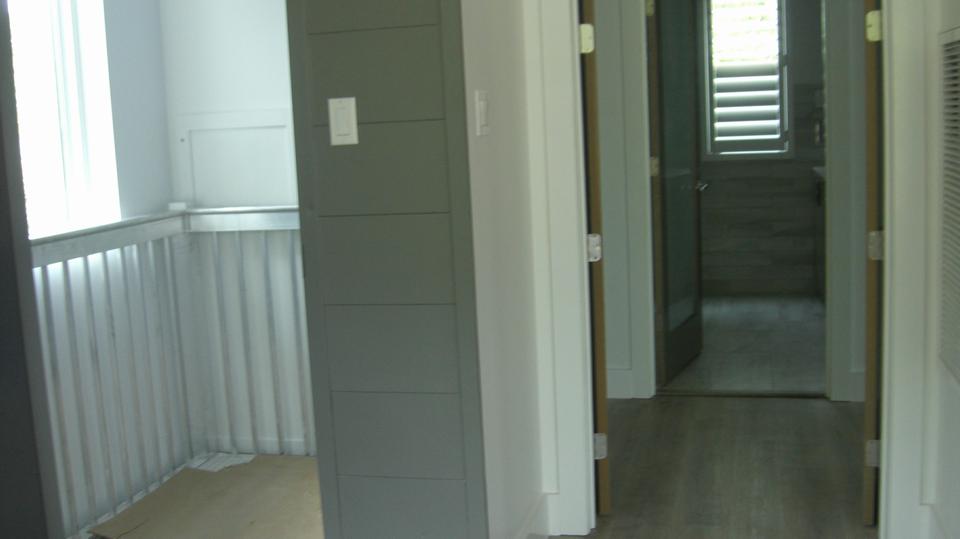 Run around and check out the front stairway first. Upstairs, oh, I get it, this is the real kitchen, no tool cabinets. It is technically a "residence", yes? But it was only half the depth of the building. What's down the hall?