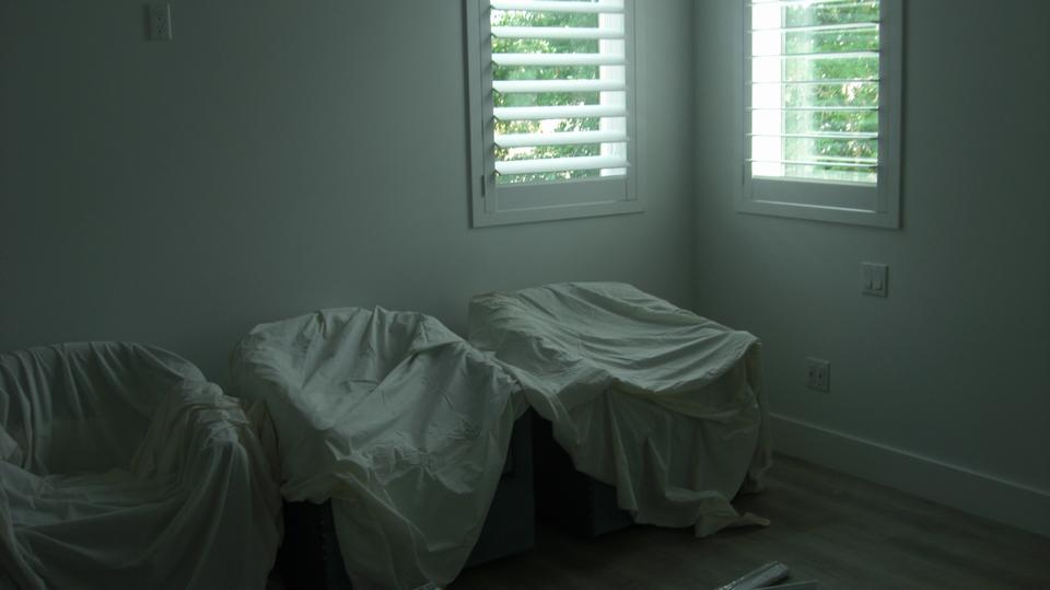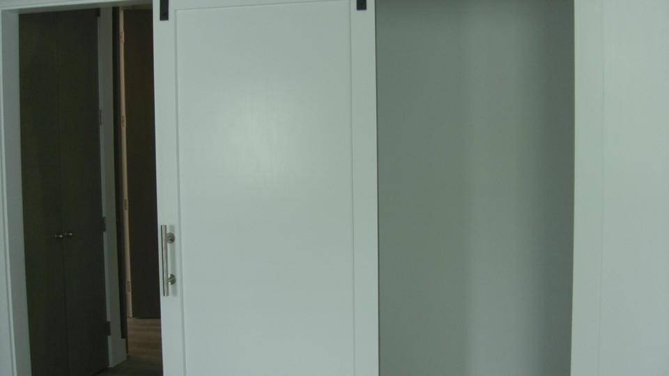 Turn right there is the bedroom with a nice closet, likely to be used as an office/library when finished.