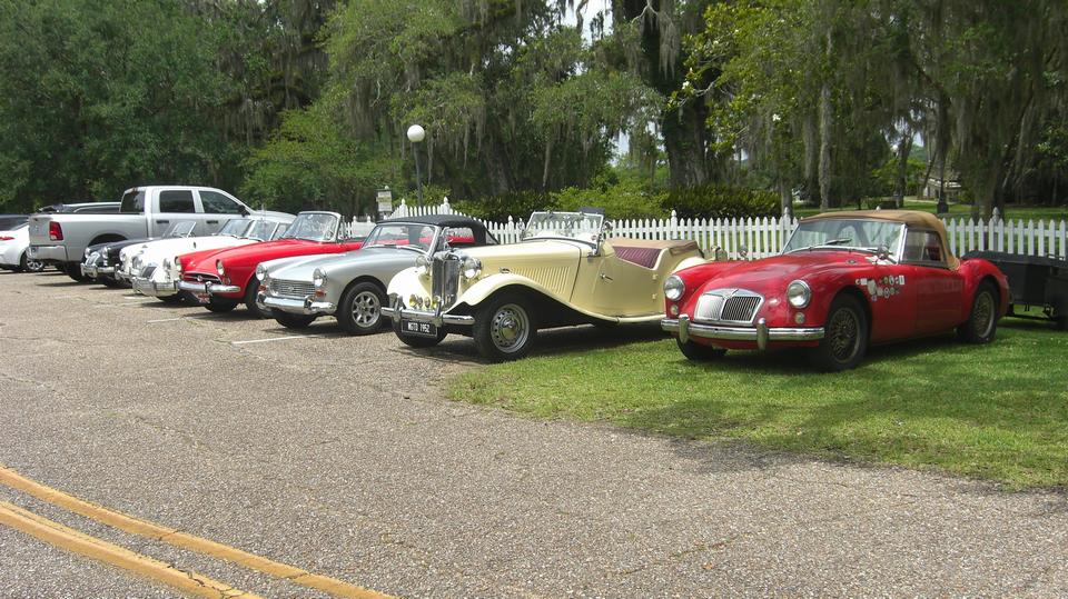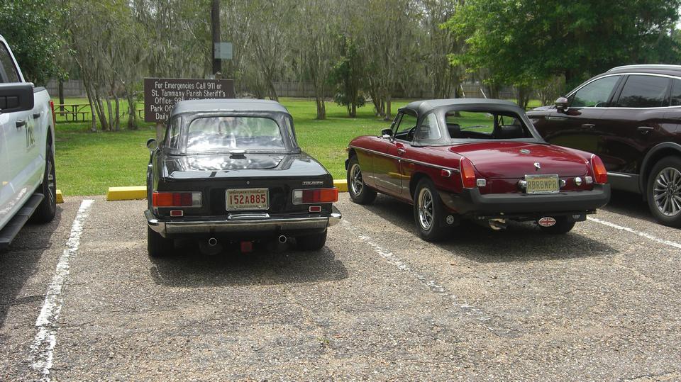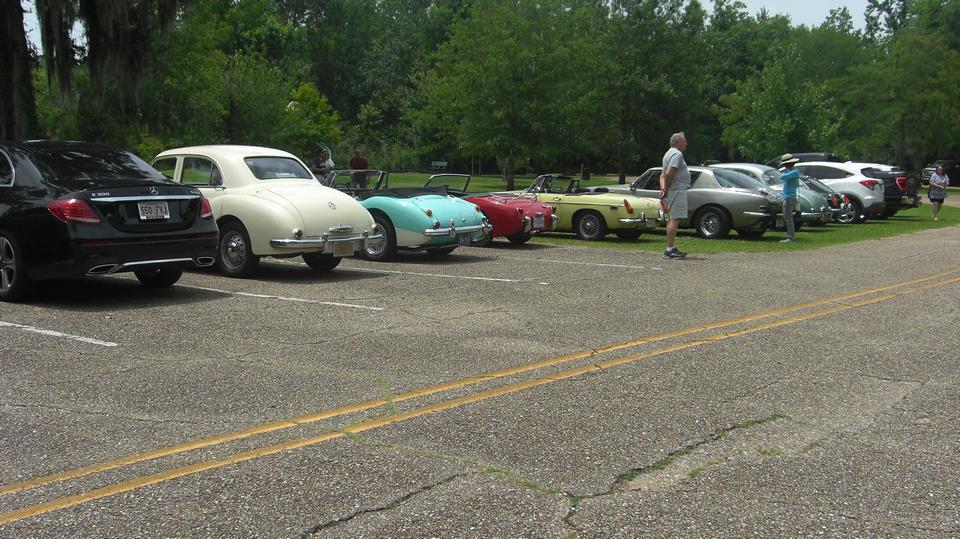 Off to Fairview State Park in Madisonville, LA for Crawfish Boil (picnic in the park). I suspect I may be allergic to shell fish since a couple of bad experiences more than 50 years ago, so I didn't plan eating crawfish. Must have been at least 20 British cars there, and at least as many more non-Brit people movers. I had to park on the grass, right in front of a prohibition sign, like several other cars.