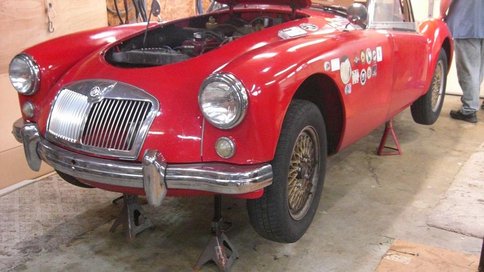 The MGA was slow to start and ran like crap, must be a carburetor problem. I managed to get it out of the car park onto the street, in spite of the fact that it would not idle below 2500 rpm. We nursed it along (after a fashion)