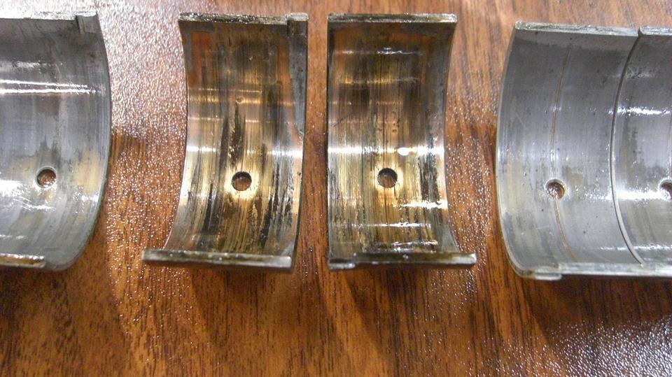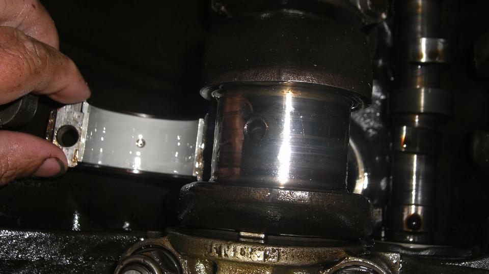 There it is going back together, pictures of #2 and #3 rod journals, still happy campers. The "optimistic" estimated 2+ hour job ran into a few inconveniences, but 6 hours had it all back together and running with fresh oil and good oil pressure. It's just maintenance.