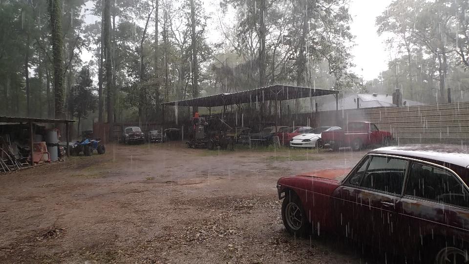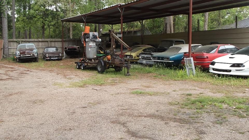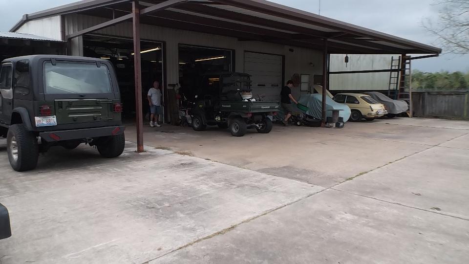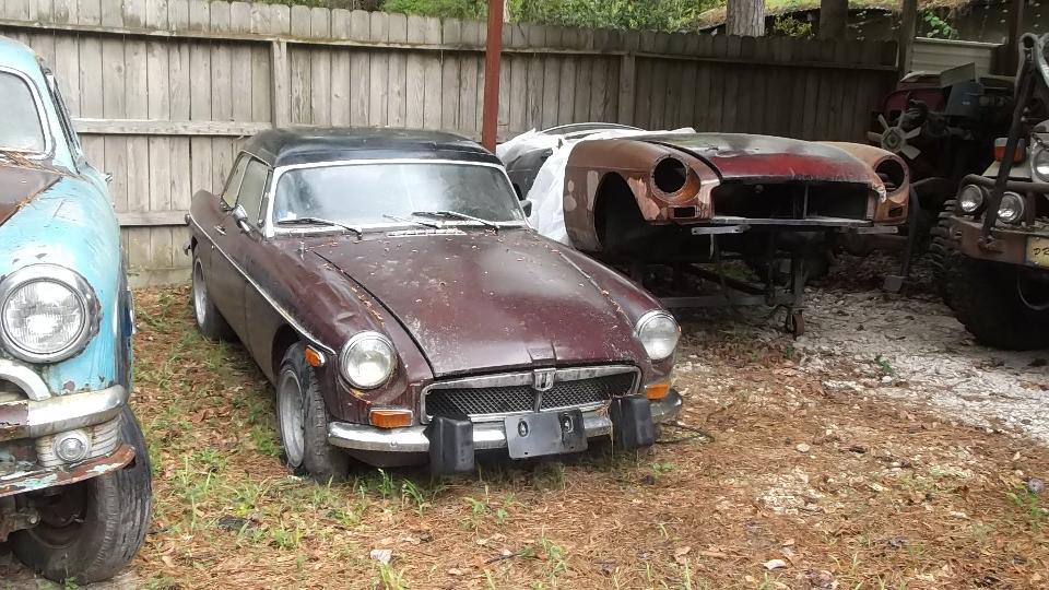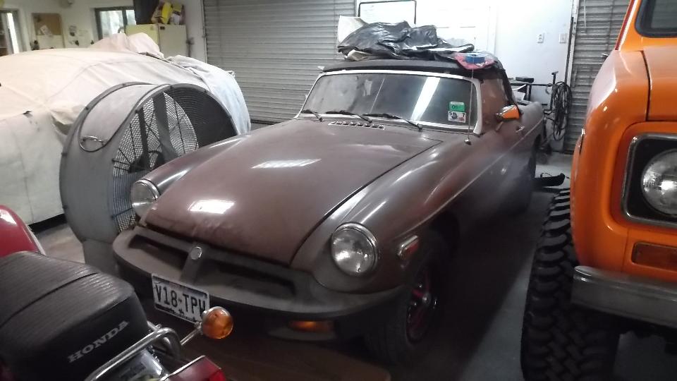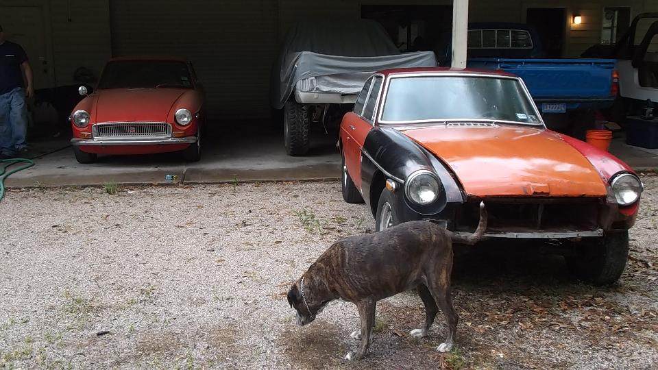 Today we finally got to see Robert Wright in Conroe, Texas. We got a sudden deluge of rain on arival, but only for a few minutes. Robert has a large assortment of MGB, mostly turn-over projects plus a few parts cars. He also has an Austin Healey 3000 getting a V8 engine (because it was already well under way before he got the car).