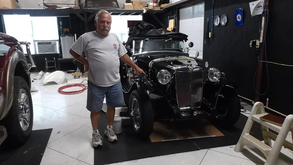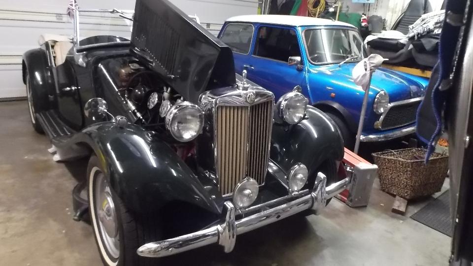This is a very personal business, dealing mostly in MG T-types these days. How the Jaguar snuck in is an odd story. The TD with a bit of front end modification is getting a 6-cylinder engine. The MGA is solid with original sheet metal. Tons of spare parts in storage.