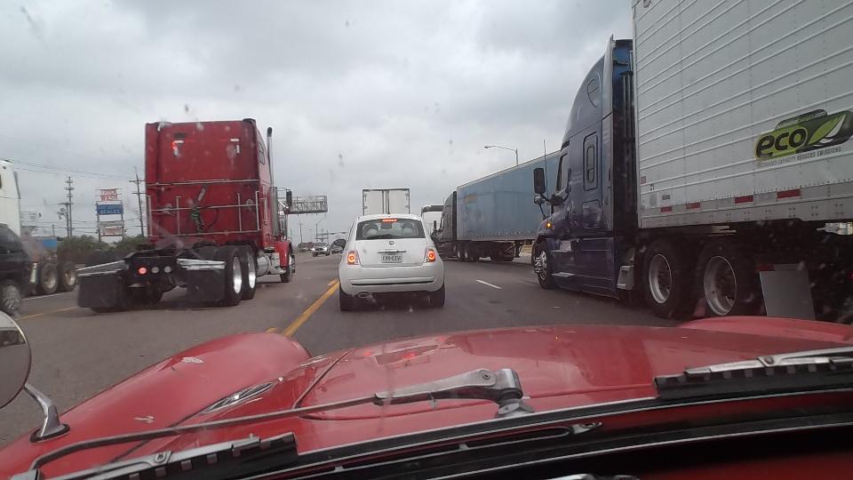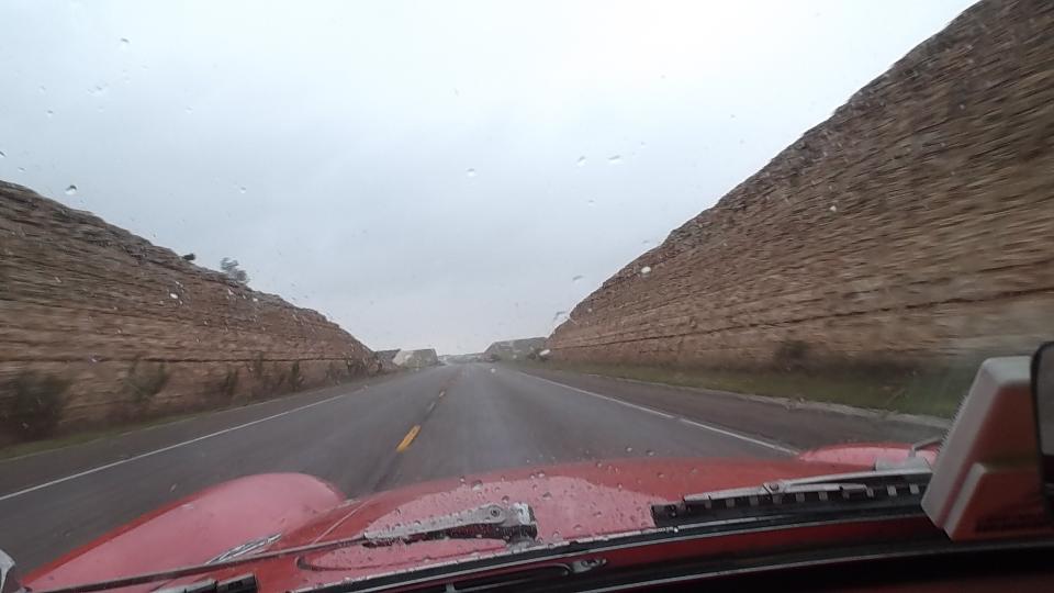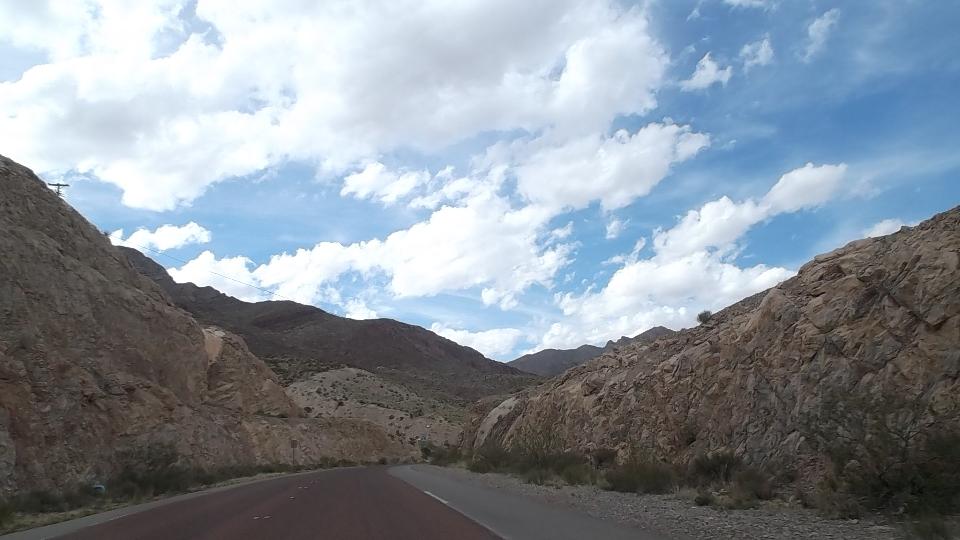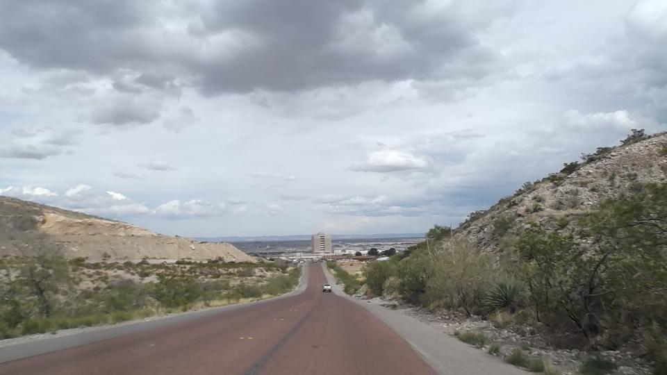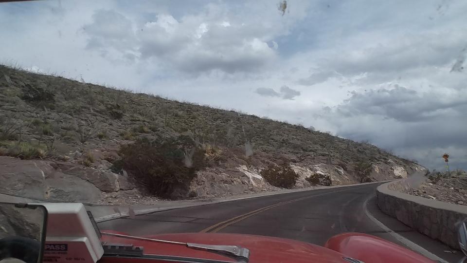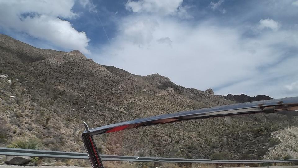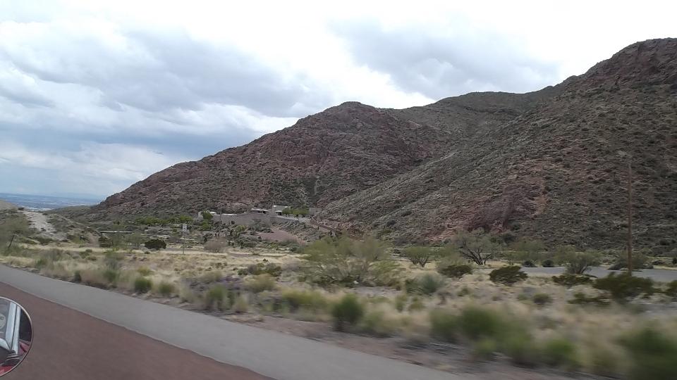 Meanwhile we had a couple hours to kill, so we took a nice 50 mile cruise in the mountains around the city. Starting east side we went north on the TX-375 loop, continuing west on Woodrow Bean Transmountain Drive. This included a long 8% grade climbing through some switchbacks, 3rd gear to the floor barely maintaining 50-mph up the hill with the trailer (but nothing new or unusual). After a brisk coast through switchbacks down the other side we turned hard right into Franklin Mountains State Park (Lower Sunset Trail). This was two miles up steeper hills, mostly 30-mph in 2nd gear, but delightfully intimate with the mountains before returning to the expressway.