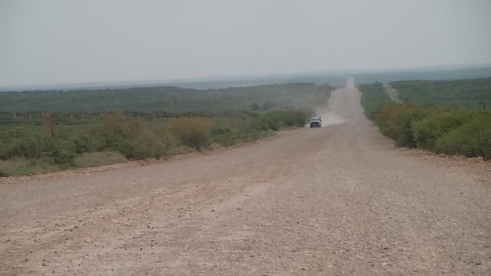 This was destined to be a long day, and not entirely according to plan. After a quick breakfast we were off at 9:30am making our way north through Laredo, targeting Eagle Pass. We had two route choices, US-83, 125 miles which might take just over two hours, or Mines Road, 114 miles along the Texas/Mexico border, which may take more than four hours. Naturally we chose the "scenic" route, but what kind of road is it that may average only 28-mph? Getting out of town was tough enough, having to crawl a few miles through the trucking district, not so bad. Once out of town we were escorting trucks at a reasonable clip for 15 miles to the intersection with TX-255 "Camino Columbia Toll Road" (which we will not use), so far 30 minutes. Then we found a nice black top road with no traffic at all, sailing long a mile a minute for another 30 minutes. Now this was beginning to worry me, because 114-50=64 miles left, and 4-1=3 hours left, and then we found out why.