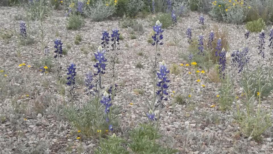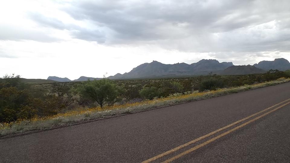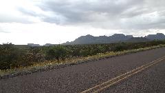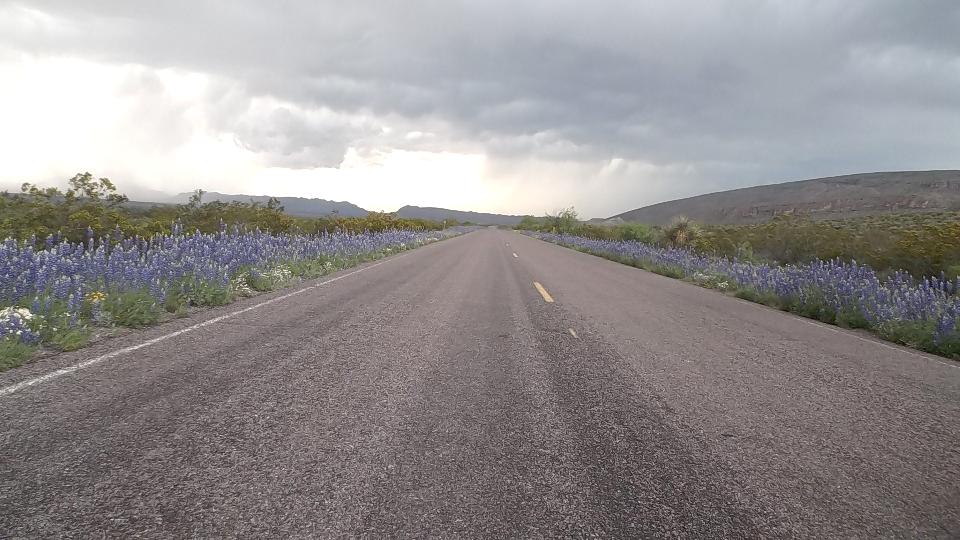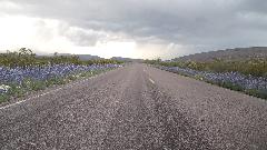 Our intended destination today was Big Bend National Park, next intersection 70 miles due south down TX-385. The evening drive into Big Bend was absolutely delightful. I love mountains, even the parched ones with scrub grass and cactus. I'm sure the Bluebells along the road were seeded by the state, but very nice regardless. We hit the south end of Big Bend loop as planned about 7:20pm. This place could easily be a one week vacation spot, but remember we are not tourists. This is when navigator decided he didn't want to drive 20 miles out of the way just to pitch a tent in one of the two campgrounds that still had space. "Bummer", says me, but we drove on west on TX-118 while we still had daylight.