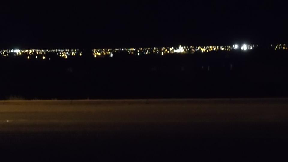 Upon entering Presidio with reduced speed limits, going north the lane markings suddenly disappeared as we crossed an intersection. We slowed down some (a lot), and a few blocks later came to a "T" intersection (end of road) with no traffic signs. Obviously no longer on TX-170, we turned around to backtrack, finding no less than three stop signs in three blocks going south. Duh? This looked like someone had intentionally removed all route or warning signs going north before the main highway crossing, and perhaps also four stop signs. Having survived this incident, we turned west through town, enjoying a view of the international bridge over the Rio Grande River, well lighted in the night.