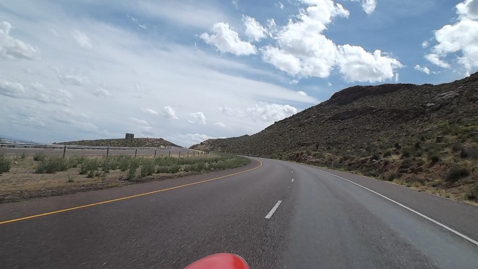 The run back down the mountain was uneventful, more casual, being careful not to melt the brakes, of course. Then back the way we came on I-40 west followed by I-25 and US-85 south. By day's end we were down to Truth Or Consequences, NM, a bit less than two hours away from El Paso, TX.