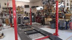 A nicely equipped shop. Lots of pictures, not all posted here. I saw three pedestal grinders for grinding wheels, wire wheels, and buffing wheels, a Spridget in process, a four-post lift.